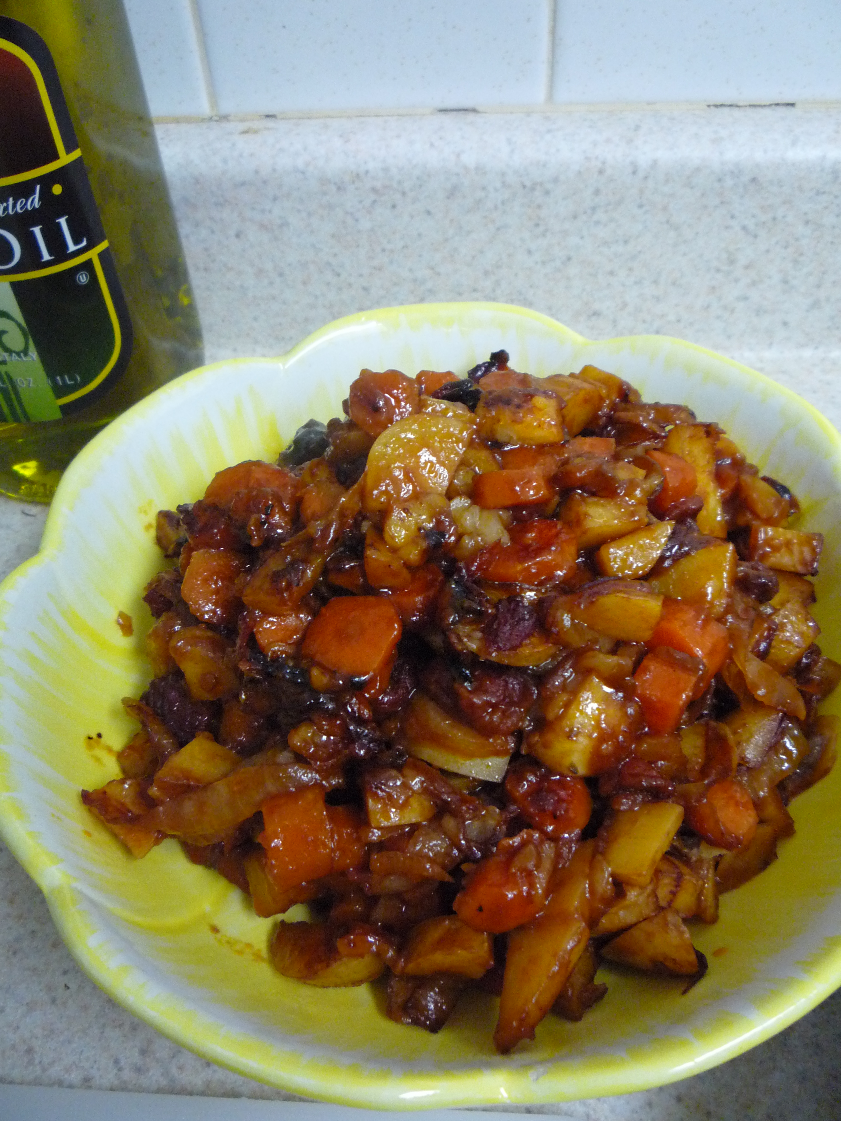 8. Remove pan from oven, place the veggies in a serving dish