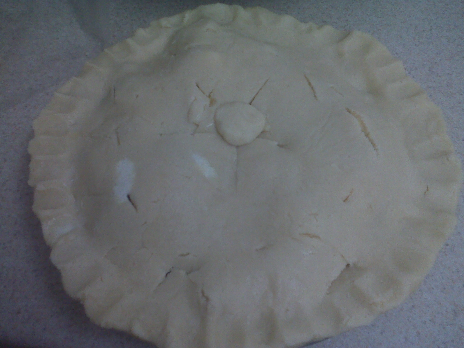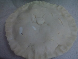 The next obstacle I incurred was the crust. Crust is the main reason I do not bake. So I cheated and bought Trader Joe’s pie crust, thinking this would make things easier. WRONG! It was crumbly from the start, and I was lost as to how to place and seal the top crust. But I fumbled my way through.