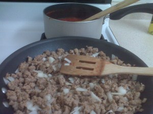 - Add 1.5 cups of the prepared sauce to the meat mixture, stir well