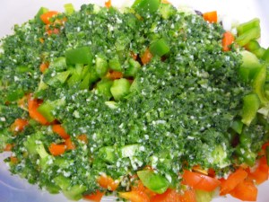 - 1 small green pepper – diced