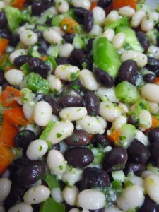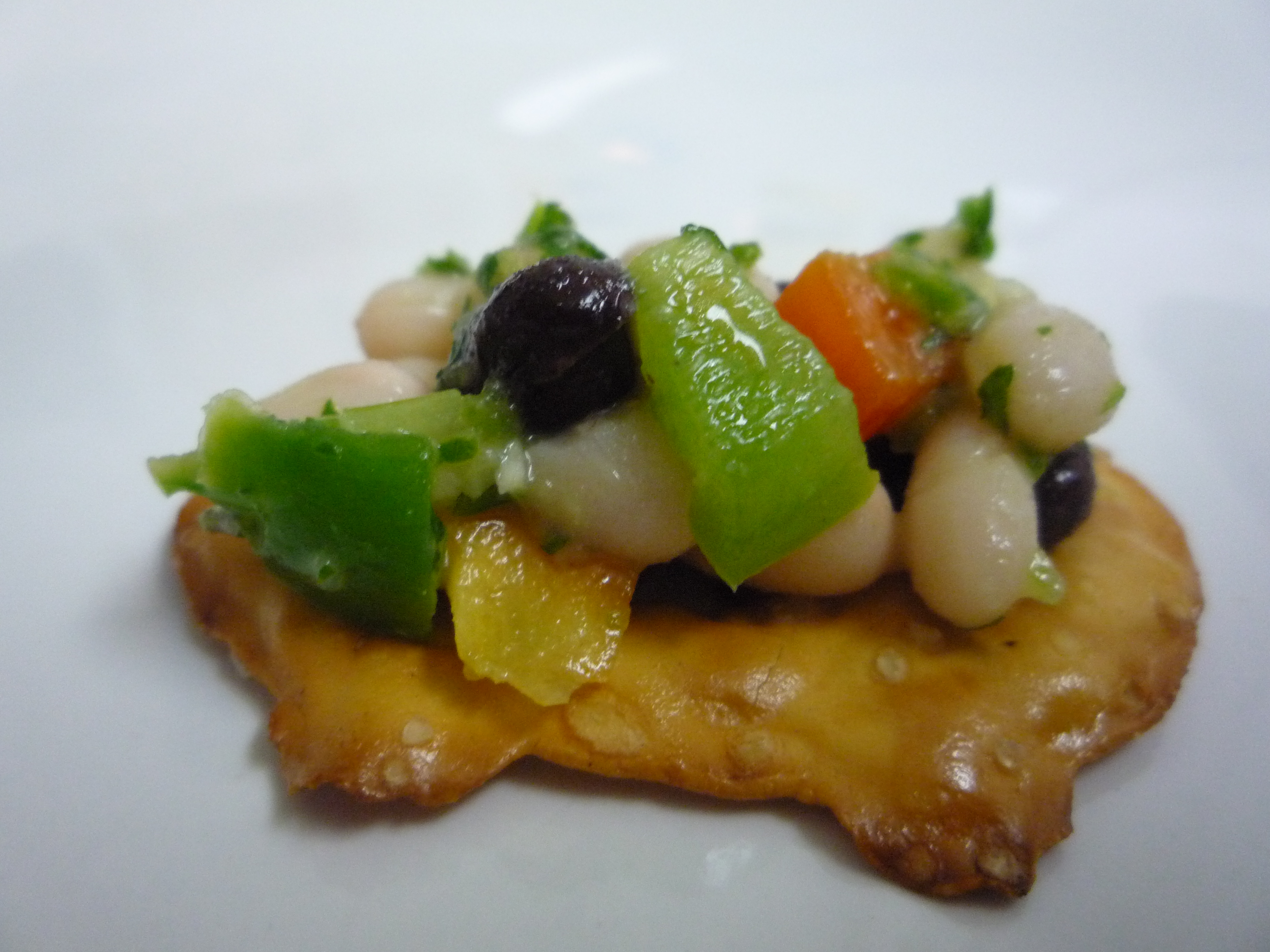 Well, inspired by white beans and Pretzel Crisps, I came up with a refreshing and fresh Bean Bruschetta Salad. It can be eaten on its own, or served on top of a Pretzel Crisp, which also makes a beautiful presentation.