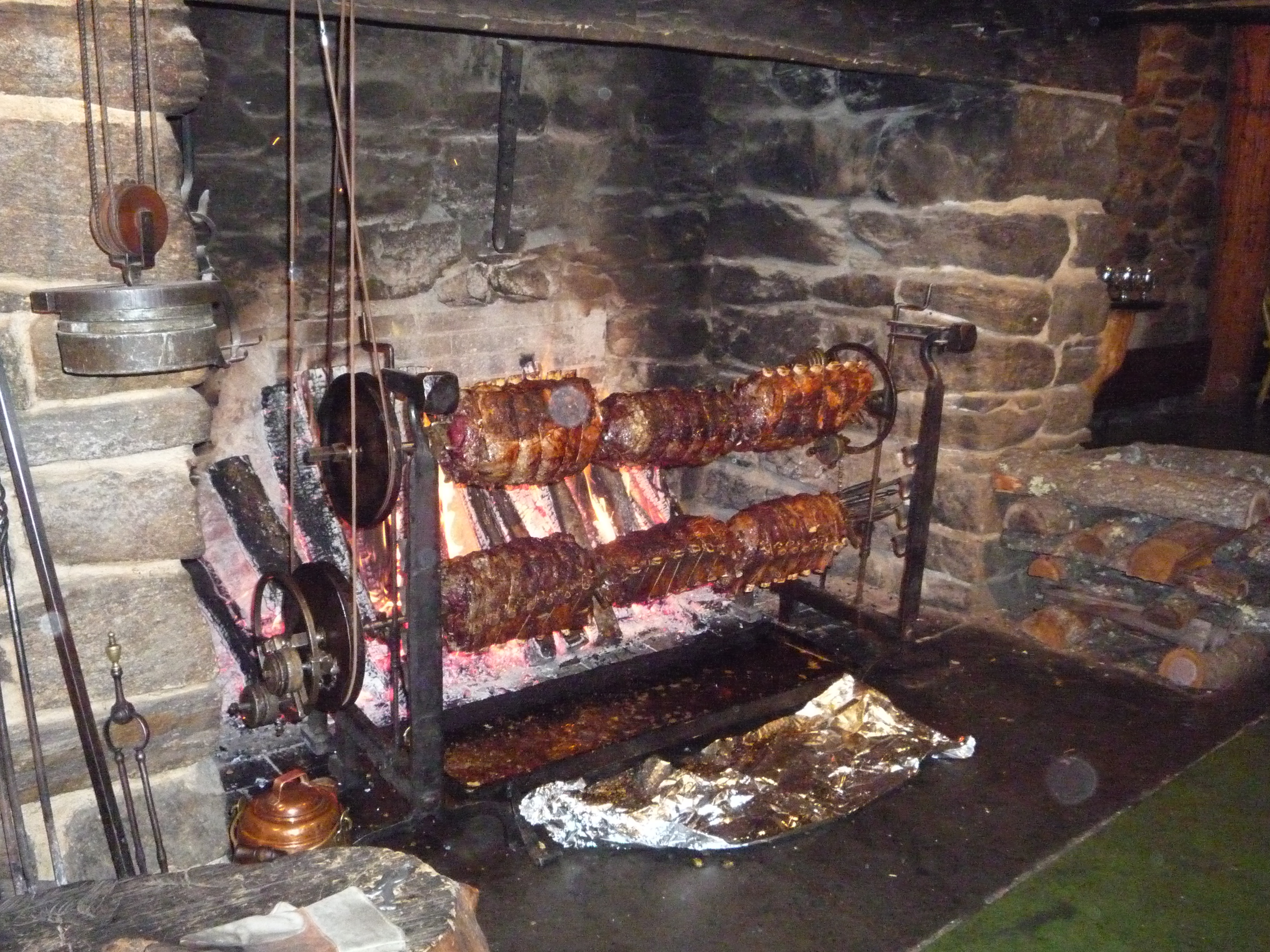 When you enter the downstairs common room, you are greeted by the giant fire place where the evening’s prime rib is already roasting!