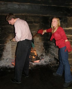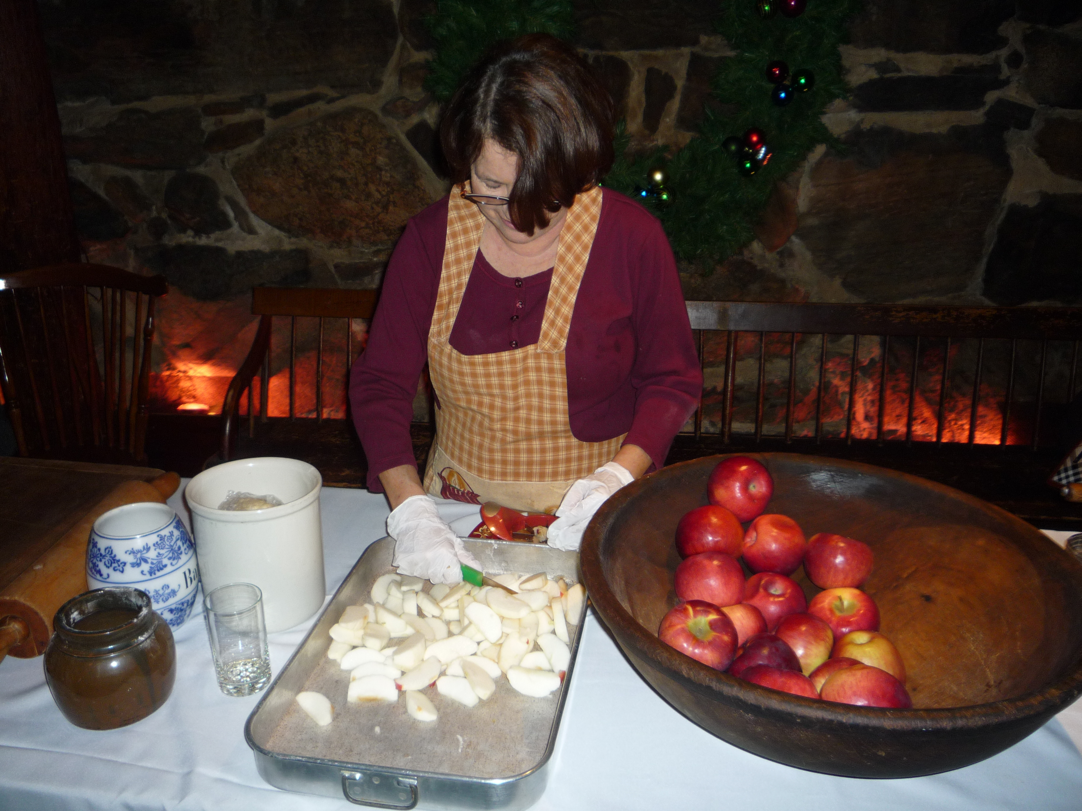 On the other side of the room you can find a nice lady peeling, coring and chopping apples for tonight’s dessert! She is happy to tell you about the authentic 19th century equipment she is using.