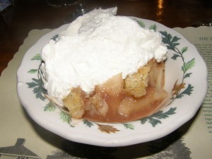 The servers came around with seconds of everything, if you could handle it…But there was still dessert to be had! Margie had, for years, told us about the owner and how he “thumped” giant dollops of whipped cream on your apple pie. Unfortunately the owner passed away a couple of years ago, but it was very nice to find out that the lady now doing the whipped cream was his daughter!
