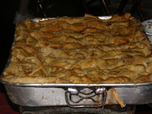 On to the main event! We were first served family style sides of sweet potatoes and spinach pie. The spinach pie was delicious, but the potatoes were a little too sweet and nutmegy for me. Everyone else loved them.