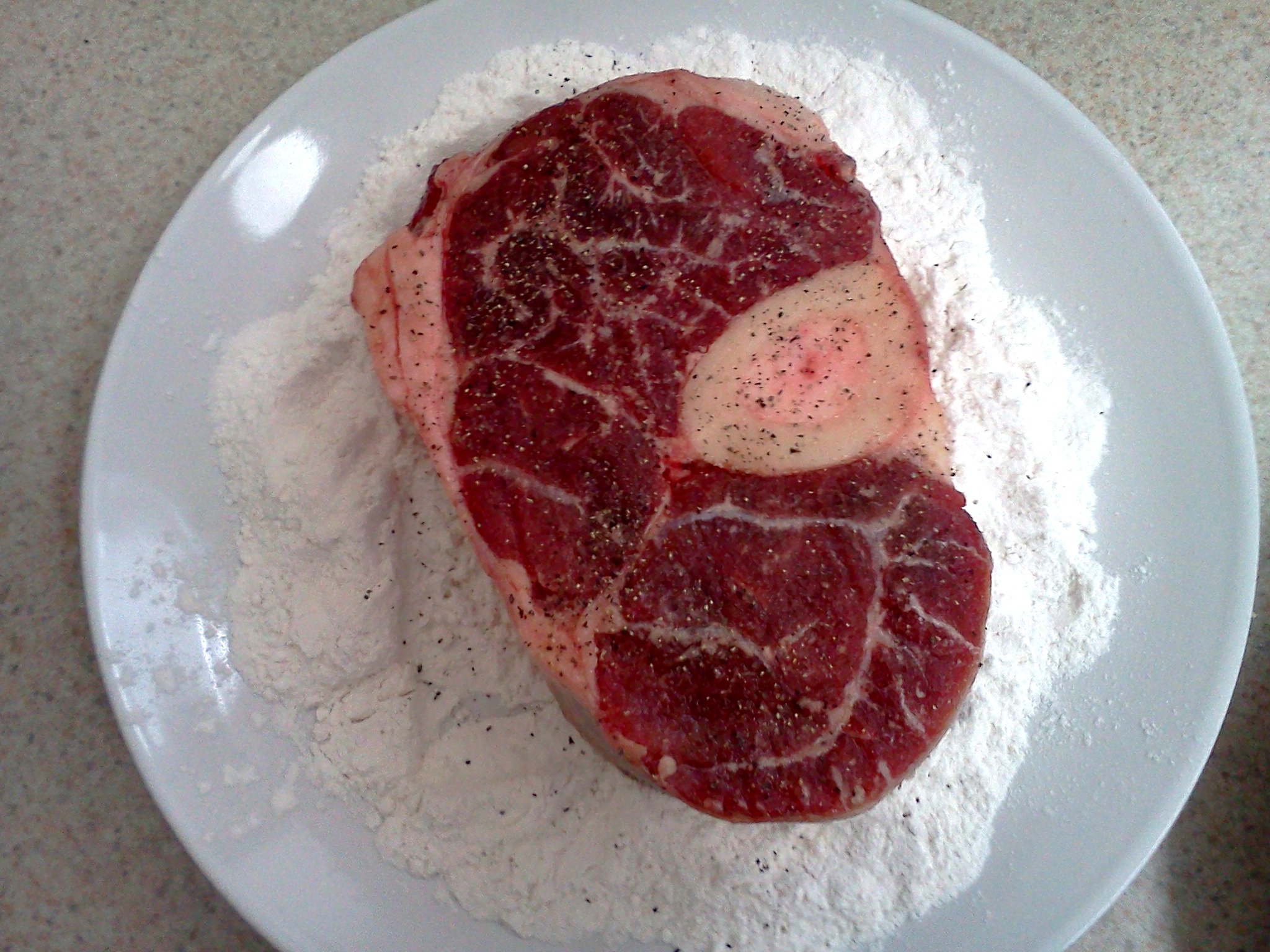 - Salt and pepper your shanks and then dust with flour