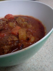 I cooked a cornish game hen in white wine sauce for my mom’s dinner party when I was 10. True story. As you can see, cooking is as much a part of my personal history as the town I grew up in! One of my very favorite recipes is for South African Tomato Bredie (a tomato based stew). Traditionally bredie is made with mutton (aka lamb), however, I used beef instead.