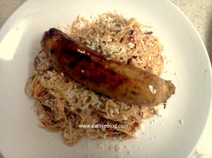 We had the sauce 2 ways this week. The first day I browned up some Whole Foods Hot Italian Chicken Sausage to eat with it.
