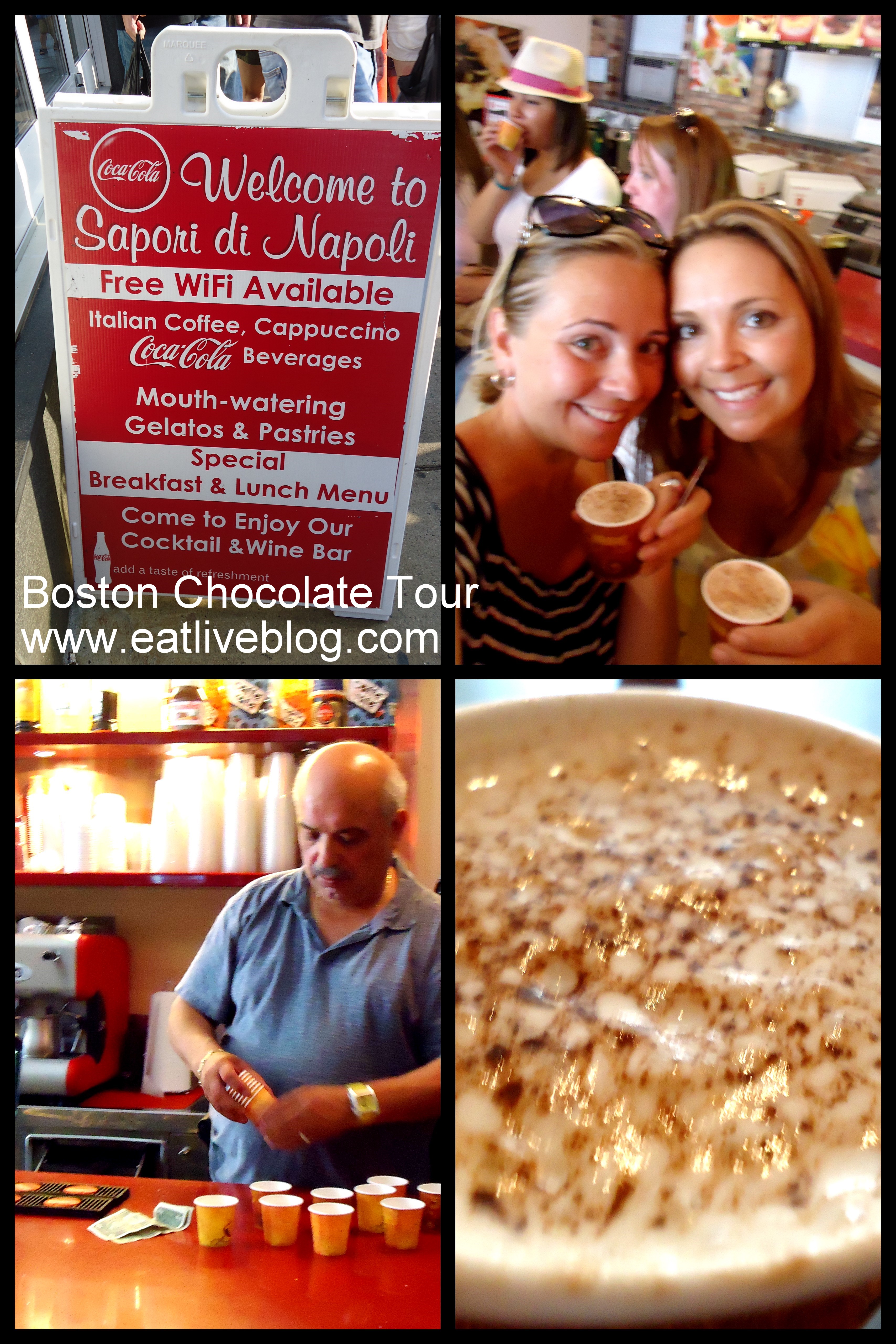 We continued our journey to the lesser traveled Salem Street in the North End. You may remember this street from such movies as The Town & trailers for I Don’t Know How She Does It. But we were on to better things! Things like Sapori di Napoli. A hidden gem where they take the term “authentic” seriously. We had a delicious chocolate drink that the owner mixed for us himself as he preached about the truth of an authentic cannoli. It was charming!