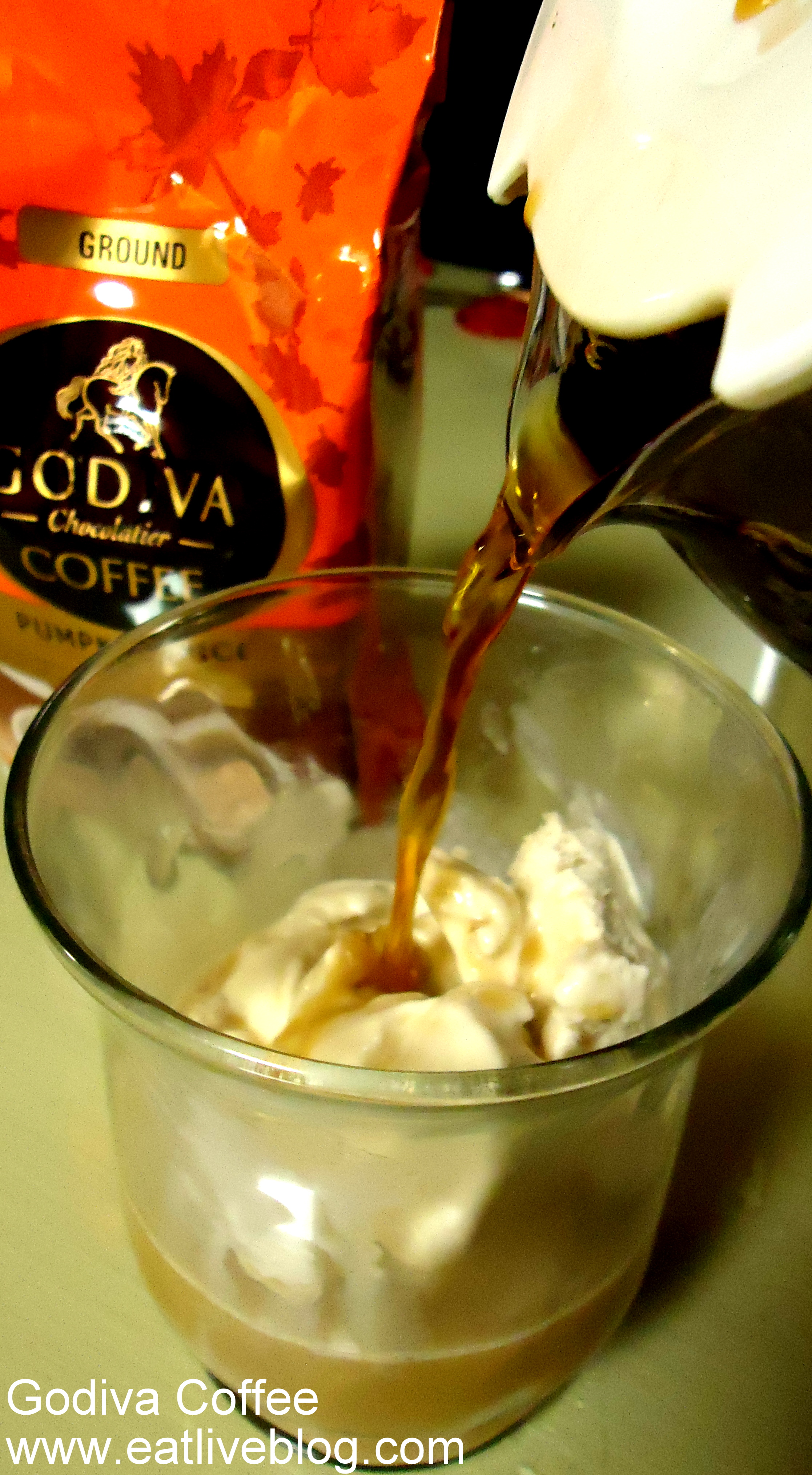 1 cup hot brewed coffee (I used Godiva Pumpkin Spice)