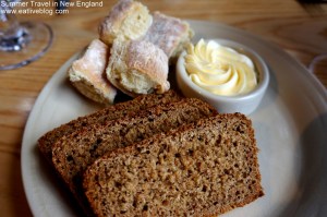 Simon Pearce is everything I picture when I picture the perfect brunch. The ambiance, the service and the food are all perfect. Even the apricot iced tea (served in Simon Pearce glassware of course) was perfection. First to our table was a plate of fresh-baked brown bread made with wheat imported from Ireland, and some Irish scones, both accompanied by fresh Vermont butter. It was very hard not to demolish all of this and ruin the rest of our meal. But we showed restraint, as difficult as that was…