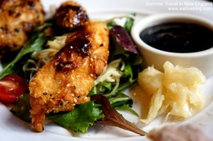 Debbie ordered the most popular dish on the menu, the sesame seared chicken w/ spicy apricot dipping sauce, pickled ginger and noodle salad. The description of this meal does not even do it justice. Michael made sure to describe it in full detail, and it lived up to his hype. The chicken was crispy and laden with sesame seeds. The sauce was sweet with just a touch of heat. Even the noodle salad, which is usually not a favorite of either of us, was completely gone when they cleared our plates. This is a dish worth driving to, and maybe one of my favorite brunch meals ever.