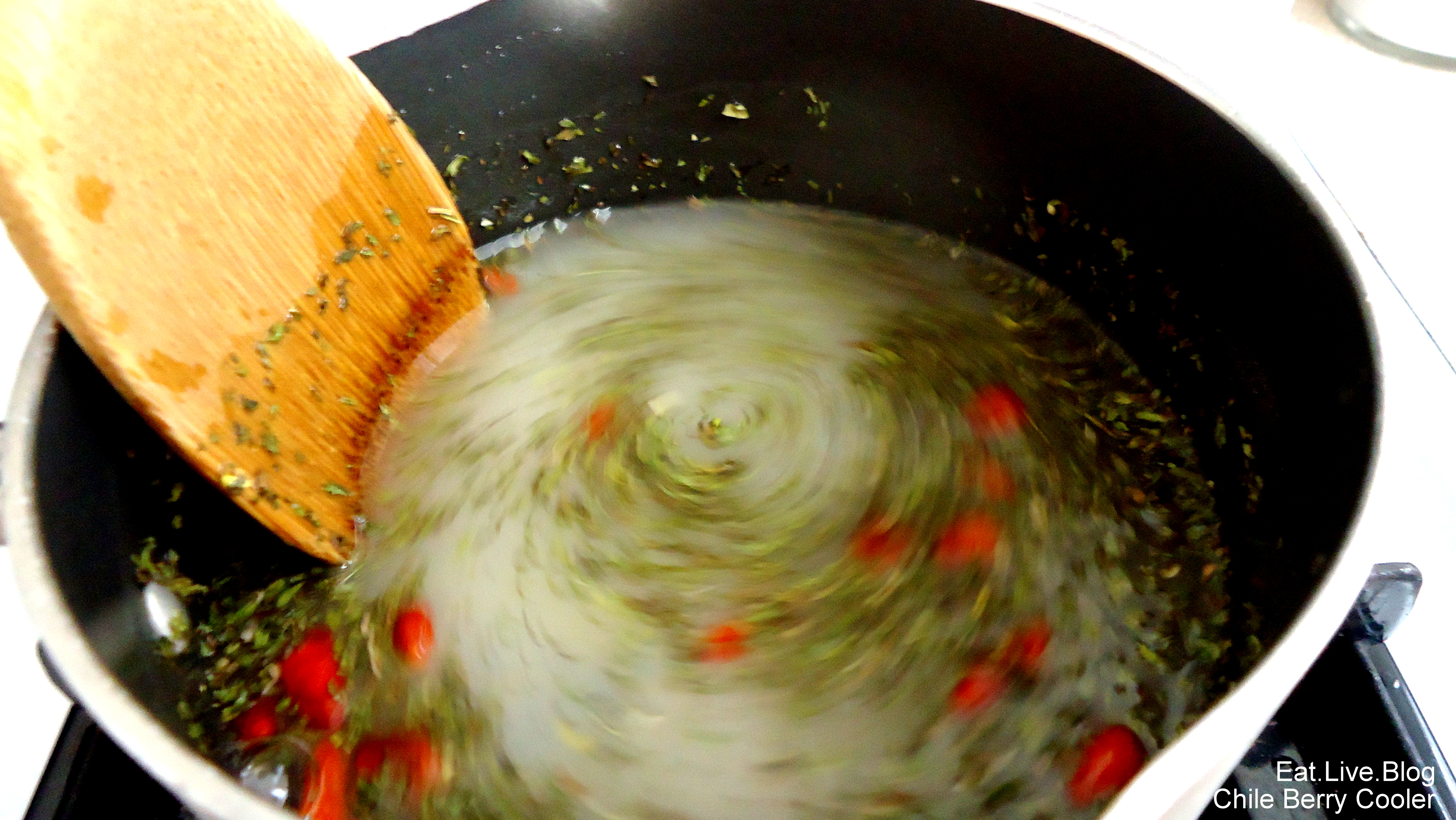 I have several cold recipes planned for these chiles. But today’s recipe for the Chile Berry Cooler is undoubtedly the chilliest (pun intended). The first step in the recipe is to make the spicy simple syrup. You will have left over syrup to get creative with. Add it to teas, berries…anything!