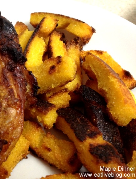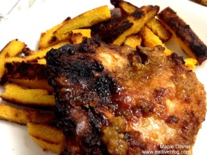 I also found this recipe on Pinterest, which spurred the idea for the chicken with the addition of , you guessed it…maple syrup! This is definitely a dinner I will repeat. The chicken was juicy and flavorful, and the polenta fries with crispy and salty sweet.