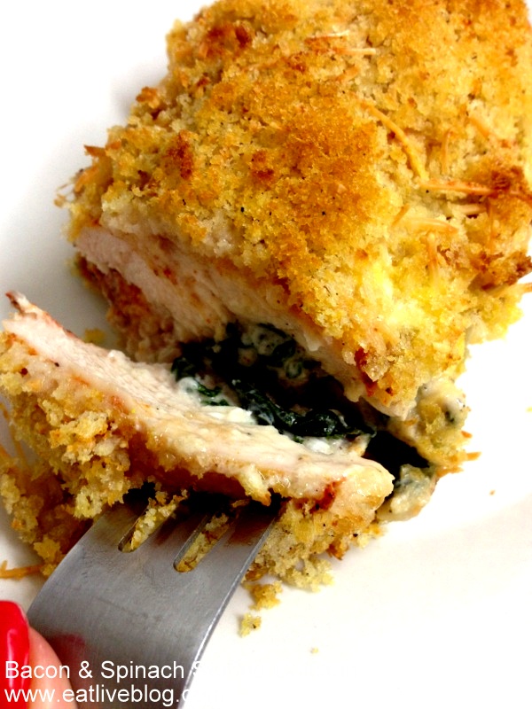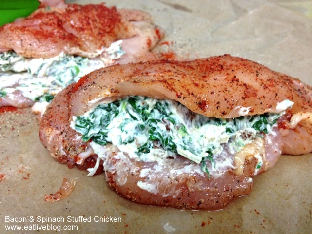 This is the method in which I cut the chicken in order to stuff it. - Set bacon aside