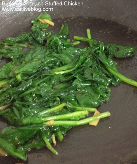 - Continue to stir the spinach until it wilts down to approximately 1/2 cup